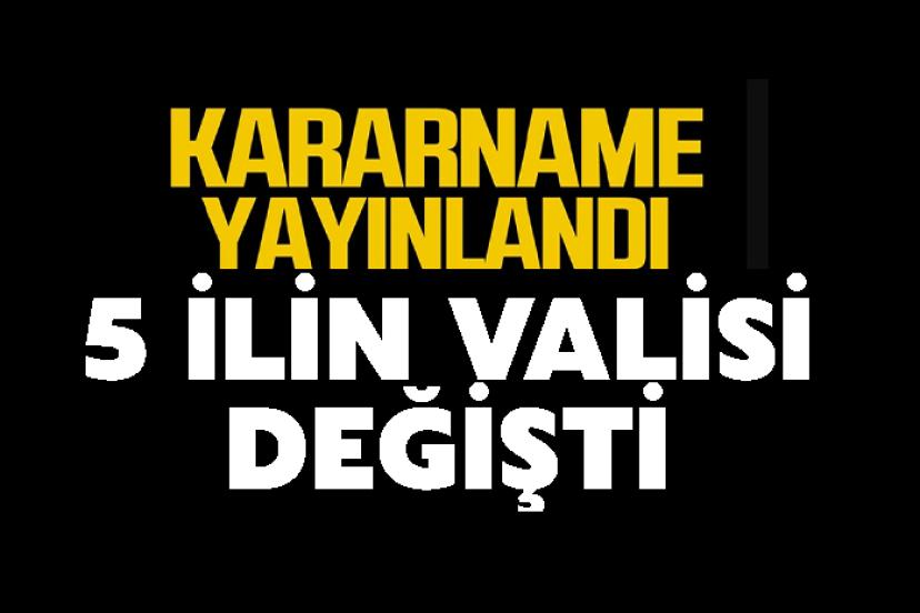 SON DAKİKA HABER: Cumhurbaşkanı Recep Tayyip Erdoğan’ın imzasıyla yayımlanan yeni atama kararlarıyla 5 ilin valisi değişti.