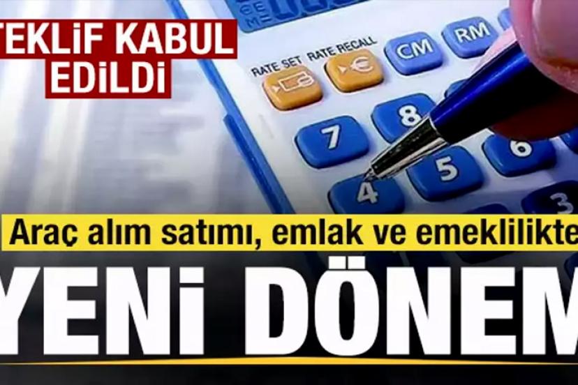 Vergi Kanunu Teklifi Meclis Plan ve Bütçe Komisyonu'nda kabul edildi. Teklifle, emlak ve araç alım-satımı ile emeklilik konularında düzenlemeler yapılıyor. İşte milyonlarca kişiyi ilgilendiren yeni düzenlemeler