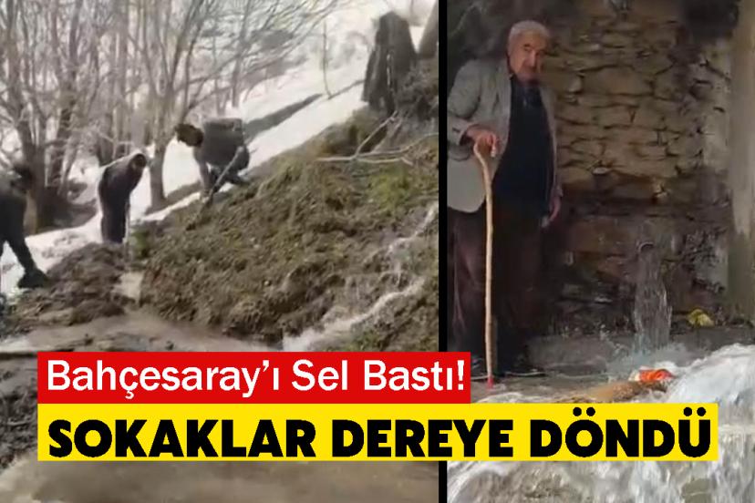 Bahçesaray’da mevsimler birbirine girdi. Yüksek kesimlerde kışın izleri sürerken, Çatbayır Mahallesi’nde etkili olan sağanak yağış sonrası dereler taştı, evleri sel bastı.
