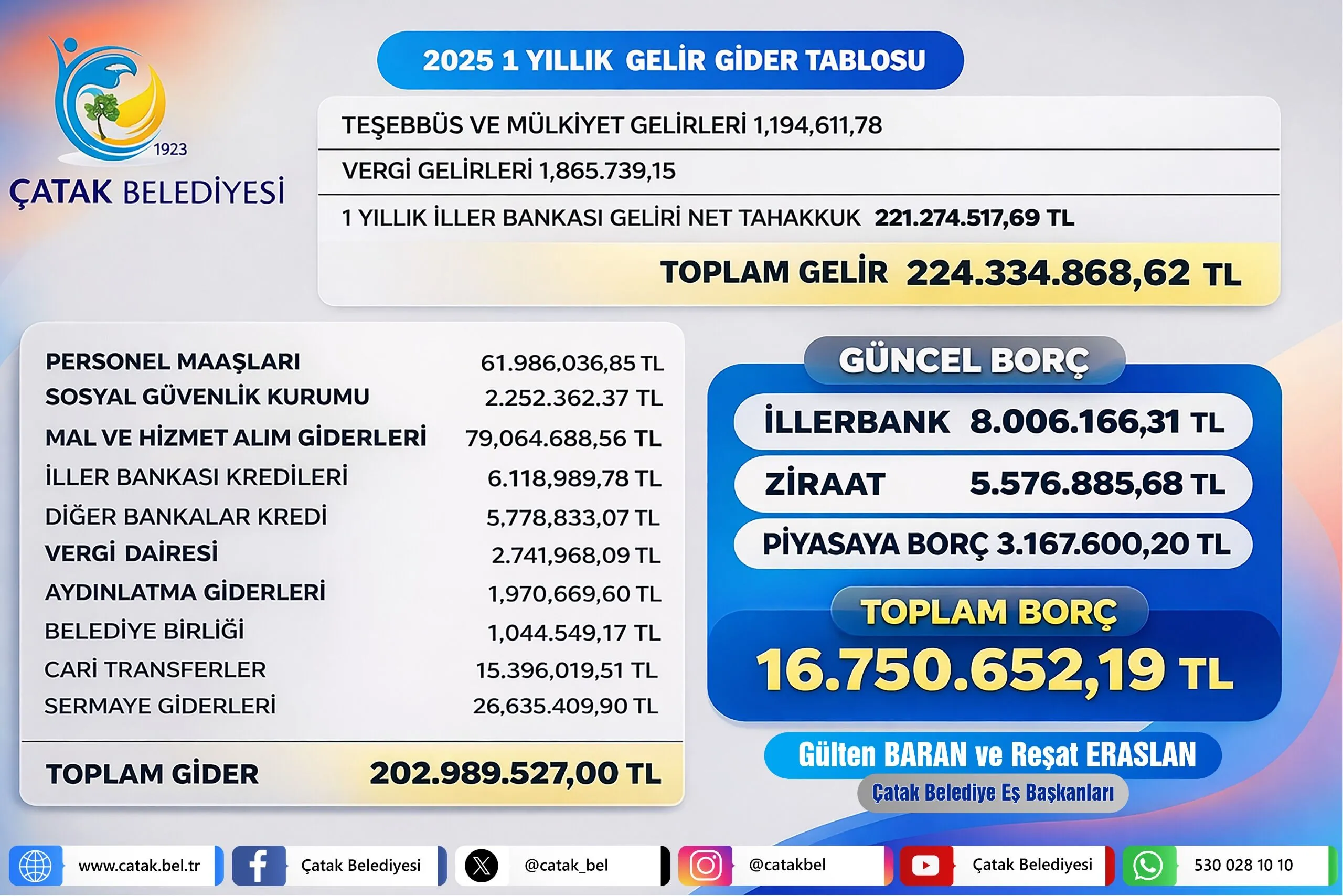 Çatak Belediyesi ne kadar borçlu? 2025 yılı gelir ve gider rakamlarını paylaşan belediyenin mali tablosunda çarpıcı detaylar var. İşte güncel rakamlar...