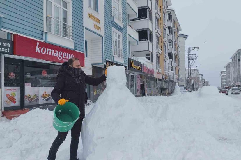 Günlerdir yağan kar yağışından dolayı şehir merkezinde kar kalınlığı 70 santimetreyi geçince birçok mahallenin de yolları kapandı. Erciş’te yoğun kar yağışından dolayı vatandaşlar dışarı çıkamayınca esnaf da durgun bir gün geçirdi. Bunun üzerine kardan adam yaparak karı eğlenceye çeviren esnaf, keyifli bir gün geçirdi.