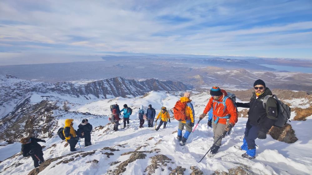 Hafta sonu etkinlikleri kapsamında rotasını Van’ın en yüksek noktalarından biri olan Erek Dağı’na çeviren Vadi Doğa Sporları Kulübü, sabahın ilk ışıklarıyla birlikte tırmanışa geçti. Kararlı adımlarla ilerleyen grup, dik yamaçlar ve zaman zaman zorlaşan hava koşullarına rağmen disiplinden ödün vermedi. Yaklaşık 5 saat süren zorlu yürüyüşün ardından 3 bin 204 metre yüksekliğe ulaşan dağcılar, burada bölgenin büyüleyici manzarasını izleme fırsatı buldu.