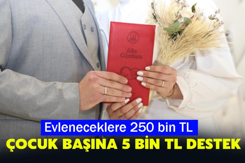Evleneceklere 250 bin TL, çocuk başına 5 bin TL destek