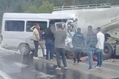 Kazada sürücüleri henüz belirlenemeyen tır ile minibüs çarpıştı.