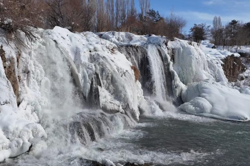 Van’ın doğa harikası Muradiye Şelalesi, dondurucu soğukların ardından adeta bir masal diyarına dönüştü. Hava sıcaklığının sıfırın altına düşmesiyle birlikte şelale buz tutarken, çevresini saran kar örtüsüyle ortaya çıkan manzara ’beyaz gelinlik’ yakıştırmasını bir kez daha haklı çıkardı. Her mevsim binlerce turisti ağırlayan Muradiye Şelalesi, kış mevsiminin gelişiyle birlikte büyüleyici bir görünüme büründü. Bölgede etkili olan kar yağışı ve dondurucu soğuklar, yaklaşık 20 metre yükseklikten akan suları kısmen dondurarak dev buz sarkıtları oluşturdu.