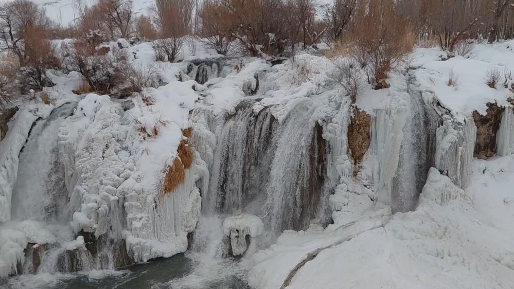 Muradiye Şelalesi eksi 12 derecede buz tuttu