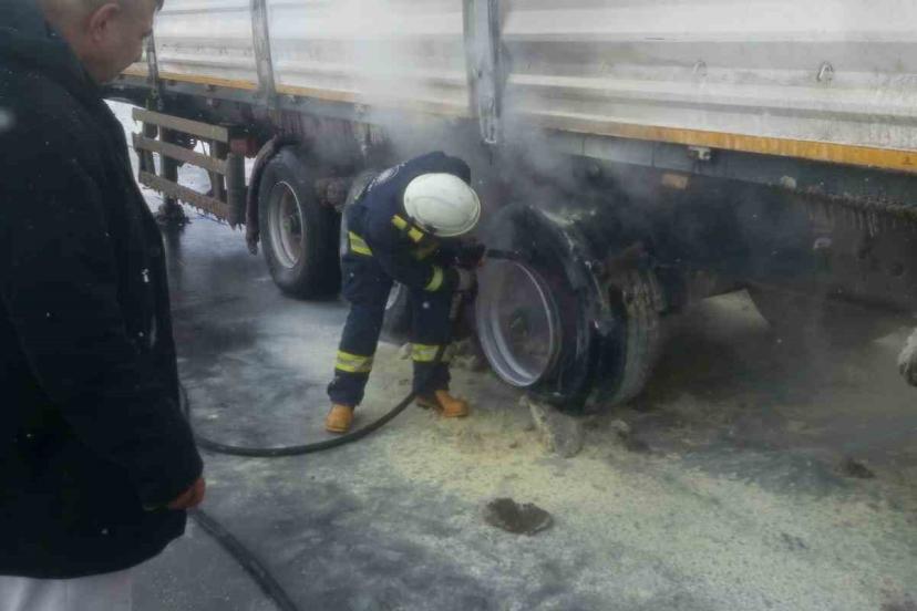 Van-Erciş kara yolunda seyir halindeki tırın yanan lastikleri itfaiye ekipleri tarafından söndürüldü.