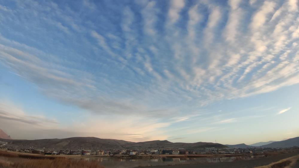 Akşam saatleri, Van semaları için sıradışı bir görsel şölen zamanı oldu. Atmosferin yüksek katmanlarında oluşan ve pamuk yığınlarını andıran Cirrocumulus bulutları, kentin silüetini adeta bir dantel gibi sardı.