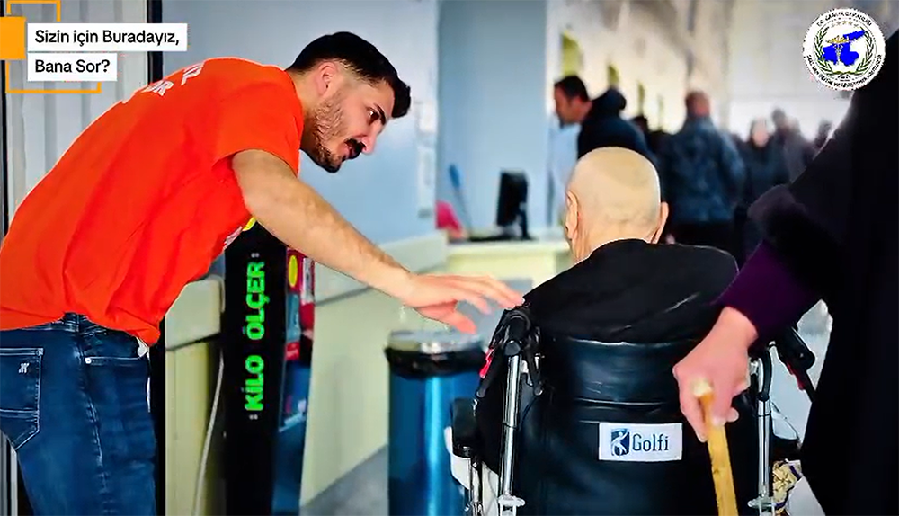 Geniş bir yerleşkeye sahip olan kurumda, özellikle ilk kez gelen vatandaşların yaşadığı yön bulma sorunu bu projeyle tarih oluyor. Üzerlerinde "Sizin İçin Buradayız" ve "Bana Sor" ifadeleri bulunan görevliler;