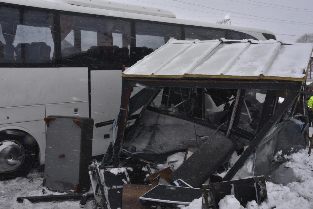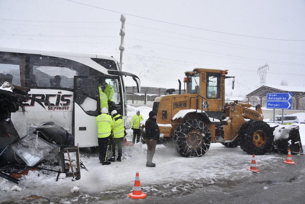 Bitlis’te kar yağışı nedeniyle kontrolden çıkan yolcu otobüsü, uygulama noktasındaki polis kulübesine çarptı. Kazada 4 polis memuru yaralandı.