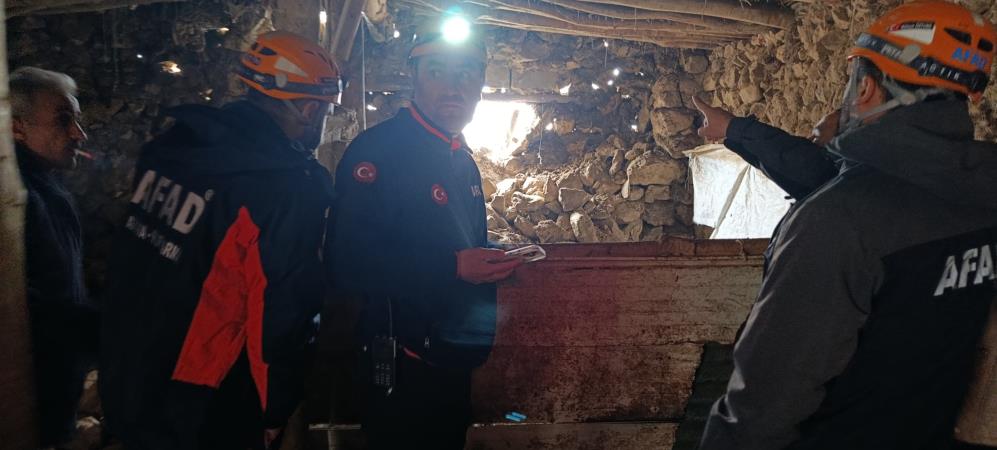 Deprem sonrası Tuşba ilçesine bağlı Ermişler Mahallesi’nde bir ahırın çöktüğü ihbarını alan Van AFAD Müdürlüğü ekipleri, ivedilikle mahalleye gitti. 1 araç ve 6 arama kurtarma personeli ile bölgeye giden ekipler tarafından yapılan ilk incelemelerde, ahır yapısında kısmi çökme meydana geldiği tespit edildi. Çevrede gerekli güvenlik önlemleri alınarak bölgede detaylı saha tarama çalışmaları yürütülüyor. Ekipler, vatandaşlara can güvenliği öncelikli olacak şekilde gerekli bilgilendirme ve yönlendirmeler yapıldı.