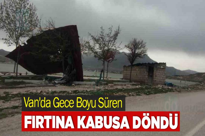 Van merkez ve ilçelerinde etkili olan kuvvetli rüzgar ve fırtına çatıları yerlerinden söktü. Gecenin geç saatlerinde çıkan kuvvetli rüzgâr ve fırtına, kent genelinde büyük çapta ağır hasarlara yol açtı. Dün gece saatlerinde başlayan ve aralıklı olarak devam eden şiddetli fırtına bazı binaların çatılarını uçururken, ağaç dallarının kırıldı, araçlar hasar gördü. Fırtınadan dolayı birçok bölgede elektrik kesintileri de yaşandı.
