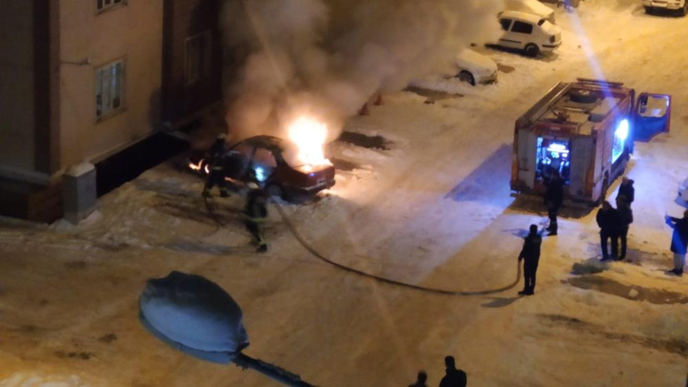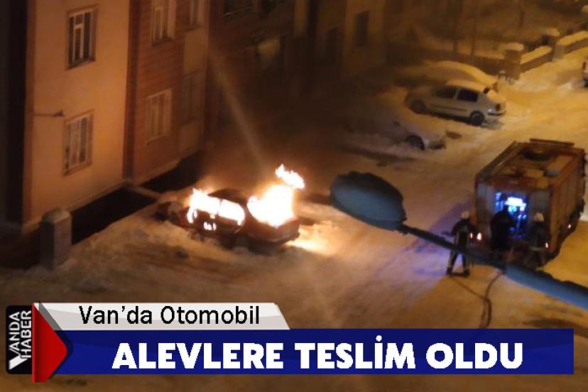Van’ın İpekyolu ilçesinde park halinde olan otomobil alev alev yandı.