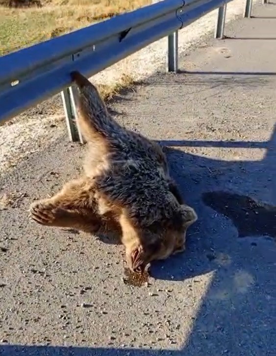 Van’da kara yoluna çıkarken araç çarpan ayı telef oldu