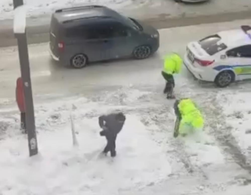 Van kent merkezinde lapa lapa yağan karın tadını en çok çocuklar çıkardı. Ancak bu kez onlara eşlik eden sürpriz isimler vardı. Yoğun kar yağışı altında trafik akışını düzenlemek için mesai harcayan trafik polisleri, kısa bir mola sırasında çocukların oyun davetini geri çevirmedi.