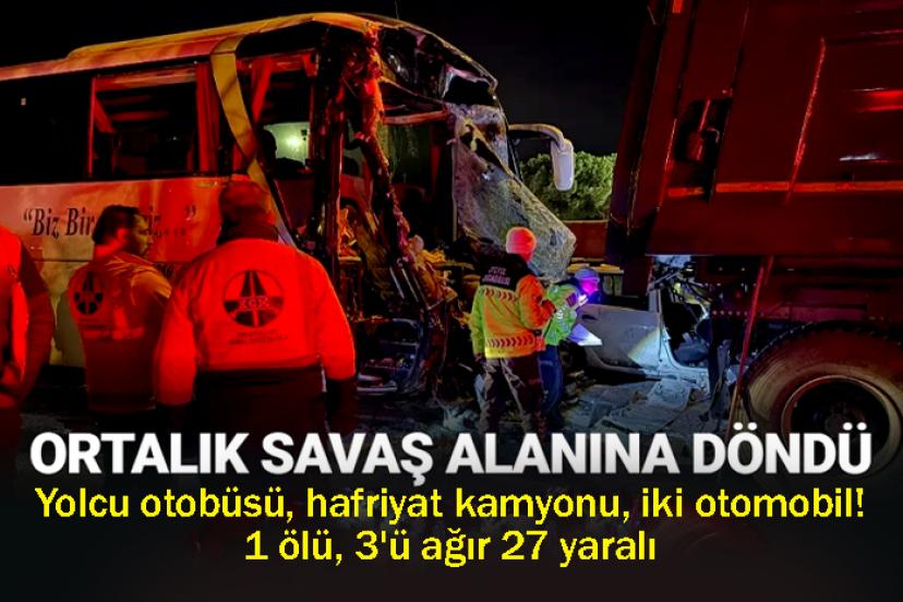 Yolcu otobüsü, hafriyat kamyonu, iki otomobil! 1 ölü, 3'ü ağır 27 yaralı