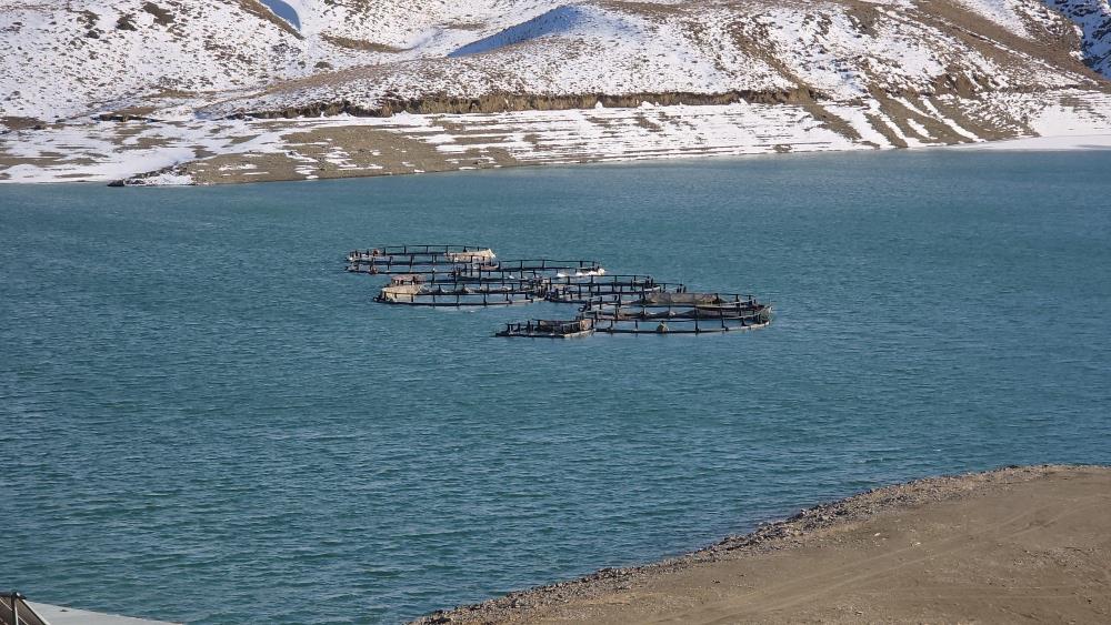 Van’ın dondurucu soğuklarında tamamen buz tutan Zernek Barajı’nda dev buz kütleleri çözülmeye başladı. Peki, balık tesislerinde son durum ne? İşte detaylar...
